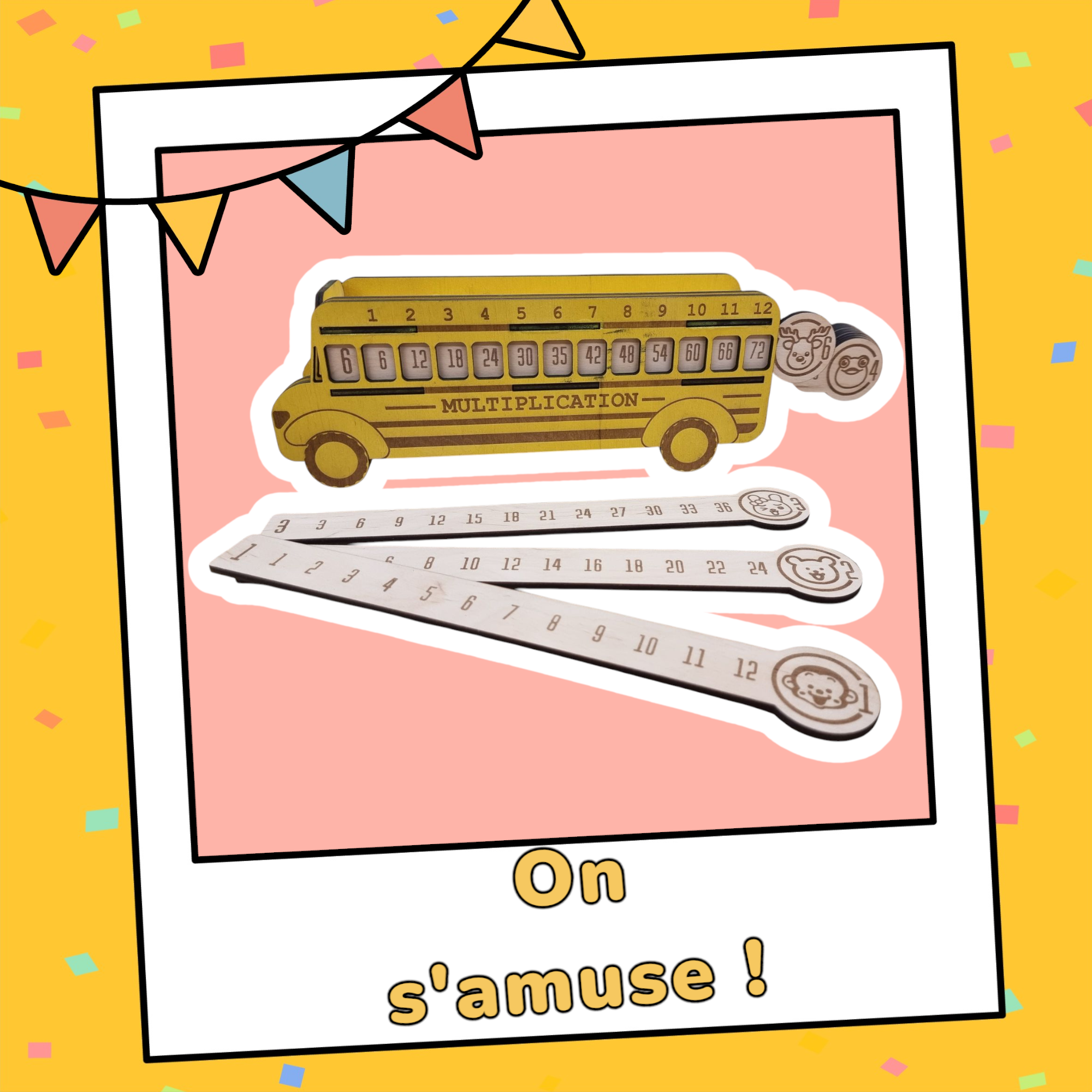 Apprendre en s’amusant avec le bus multiplication ! Votre enfant aimera apprendre ses tables de multiplications, grâce à ce bus en bois.