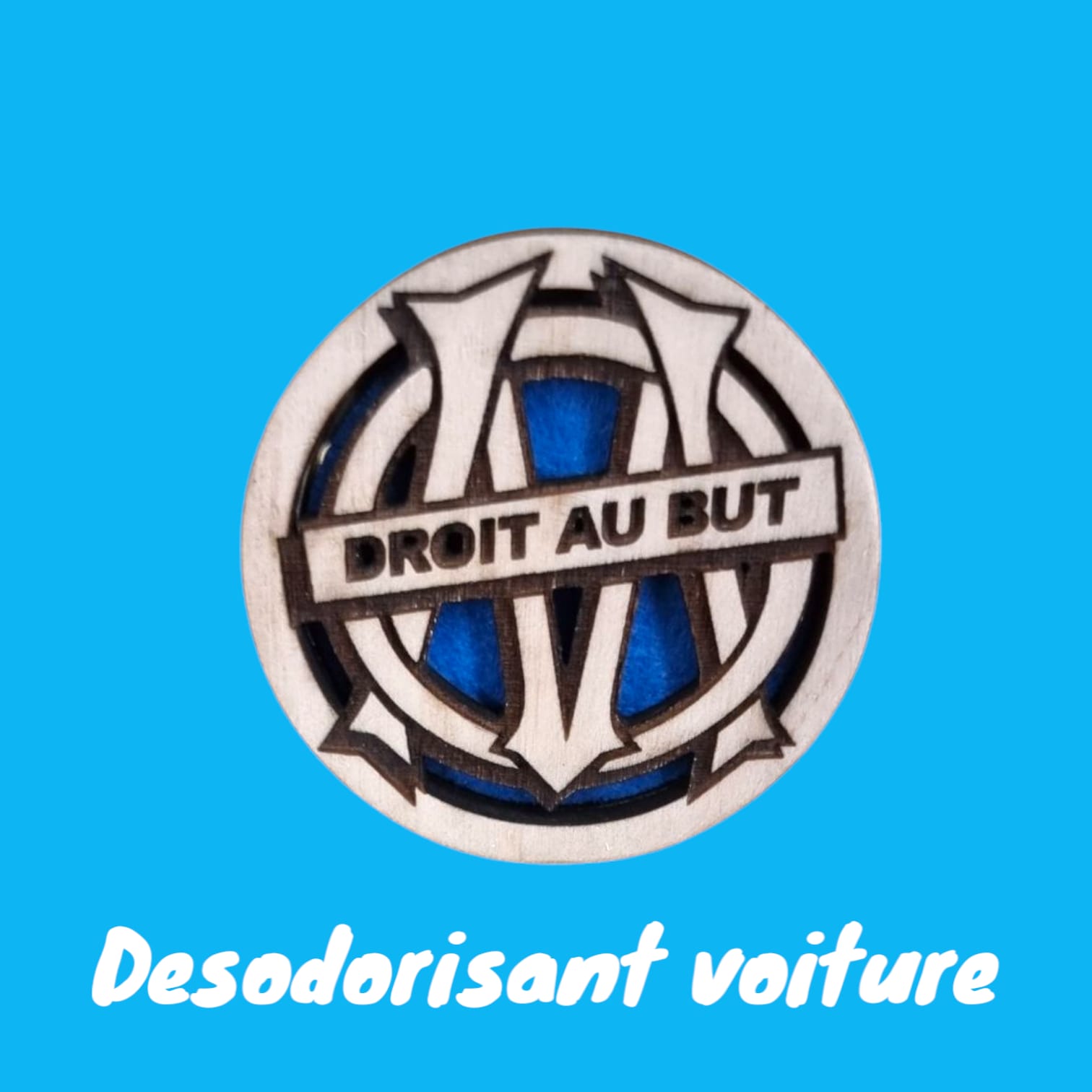 Découvrez notre désodorisant voiture Olympique de Marseille clipsable pour ventilation, fabriqué en bois avec une feutrine intérieure et orné d’un joli design.
